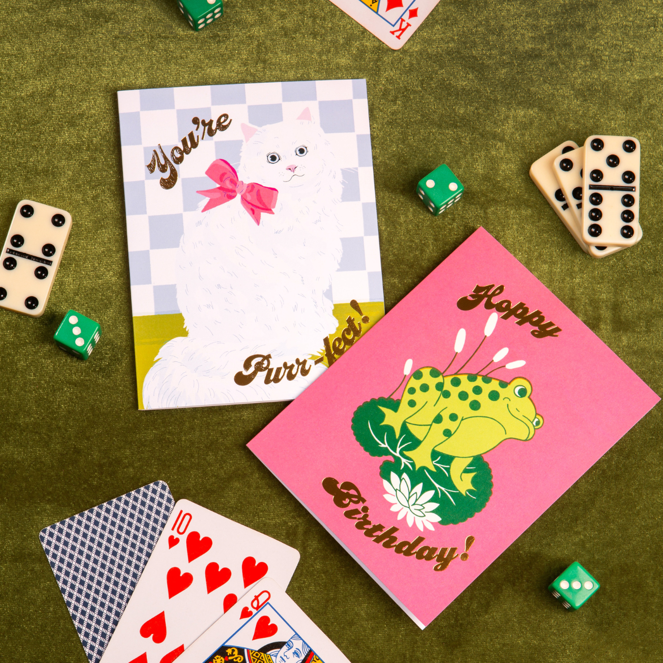 Our signature greeting cards are designed to delight—bold graphics, premium cardstock, and just the right pop of shine. Each card is blank inside so you can say exactly what you mean (funny, heartfelt, or both).