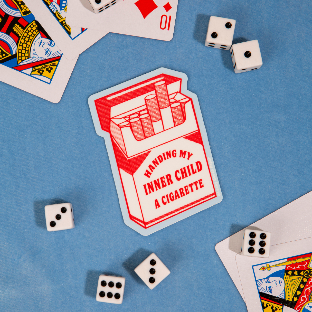 A cheeky little reminder to check in with yourself (and maybe your vices). Printed on luxe matte vinyl with a velvety finish, this sticker adds bold personality to laptops, water bottles, notebooks, and more.