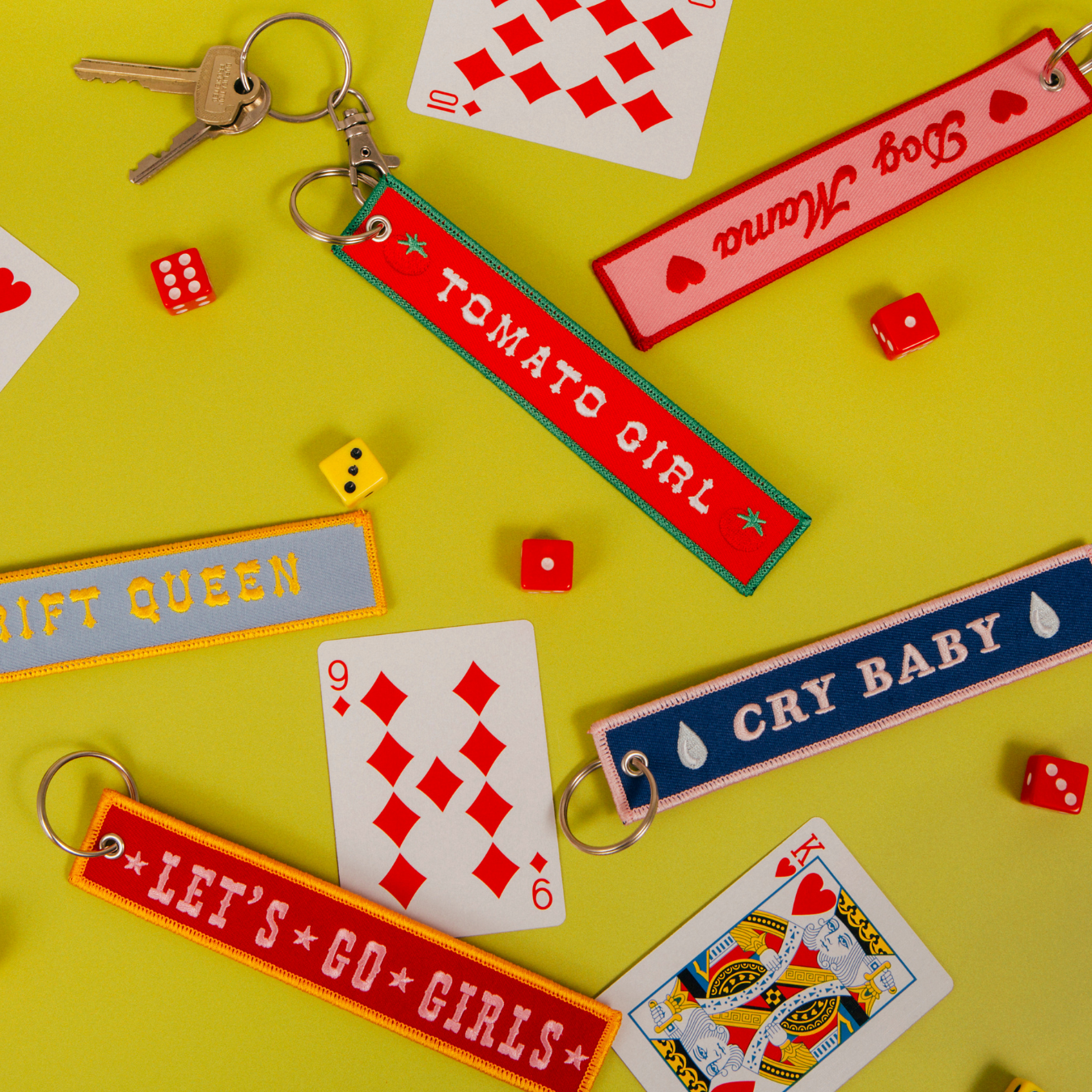 A bold little tag for emotional support keys, bags, or backpacks. Made from sturdy woven nylon with crisp embroidered lettering, this piece is equal parts dramatic and durable.